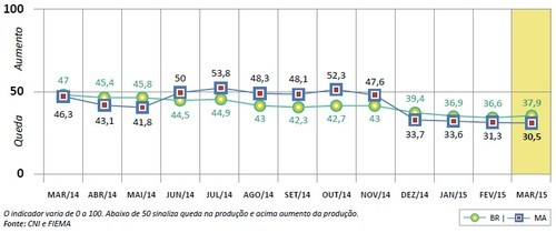 SÃO LUÍS – A Federação das Indústrias do Estado do Maranhão (FIEMA) divulgou esta semana a Sondagem da Construção Civil do Maranhão referente ao primeiro trimestre de 2015, que sinalizou nova queda no nível de atividade da indústria do setor, ficando em 30,5 pontos e permanecendo abaixo dos 50 pontos. O estudo da entidade pesquisou empresários de construtoras de edifícios, empresas de serviços e de obras de infraestrutura no período de 1º a 15 de abril.