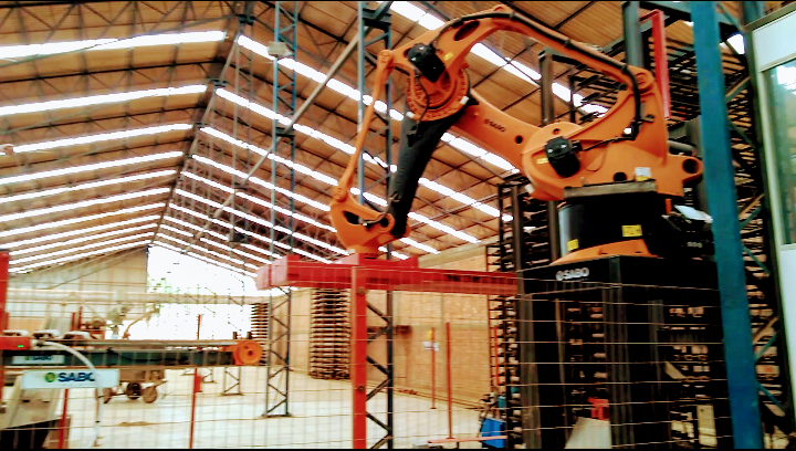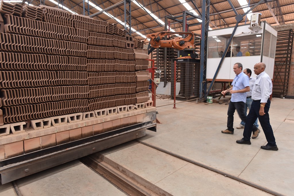 “Hoje temos três robôs que movimentam toda a carga da indústria. Esse robô aqui, por exemplo, está pegando as telhas nas grades, que vieram do secador, e colocando em uma esteira para o pessoal pegar. Aí, você imagina que, com uma altura dessas de grade, de 4 metros, não tinha como fazer isso manualmente. Nas indústrias que não são automatizadas, essas grades ficam na altura máxima de 2 metros”, explicou. O trabalho que antes era realizado por trabalhadores, hoje é feito com mais rapidez pelos robôs, mas isso não exclui a mão de obra humana, frisou. “Hoje temos uma mão de obra mais qualificada e especializada”.