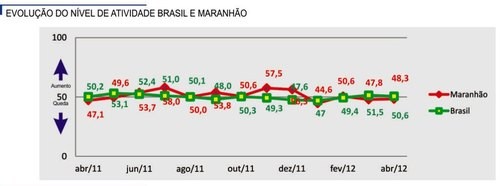 O cenário revelado pela pesquisa mostra que o nível de atividade no Maranhão ficou abaixo do registrado para Nordeste e para o Brasil, onde se anotou 51,3 pontos e 50,6 pontos respectivamente.